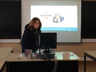 Foi realizada uma sessão informativa, pela professora bibliotecária, em que foram abordados temas como: Passwords, Chats, Informação Partilhada e Cyberbullying. Embora os alunos do 3º ano sejam ainda muito jovens e nem todos utilizem as tecnologias diariamente e sem supervisão de um adulto, estes temas são pertinentes, para vão construindo uma atitude crítica em relação ao seu uso. Os alunos participaram numa atividade de aferição de conhecimentos com a utilização da Ferramenta Digital: Plickers. Os alunos participaram muito bem ao longo da sessão e no final manifestaram o seus gosto pelo jogo.